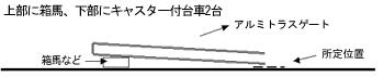 足元に置いた台車を徐々に内側へ移動させる。 |